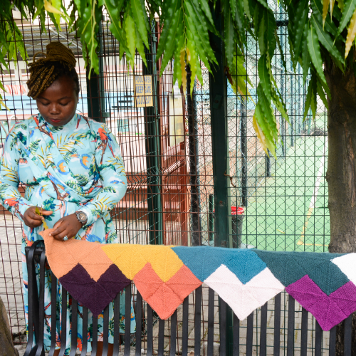 • When I started to knit, I wanted to learn something new with each project. New stitches to learn, expand my skills by challenging myself.  My second project was a multi-coloured lace shawl.  CDD is my favourite stitch.  Also I so enjoy knitting lace!